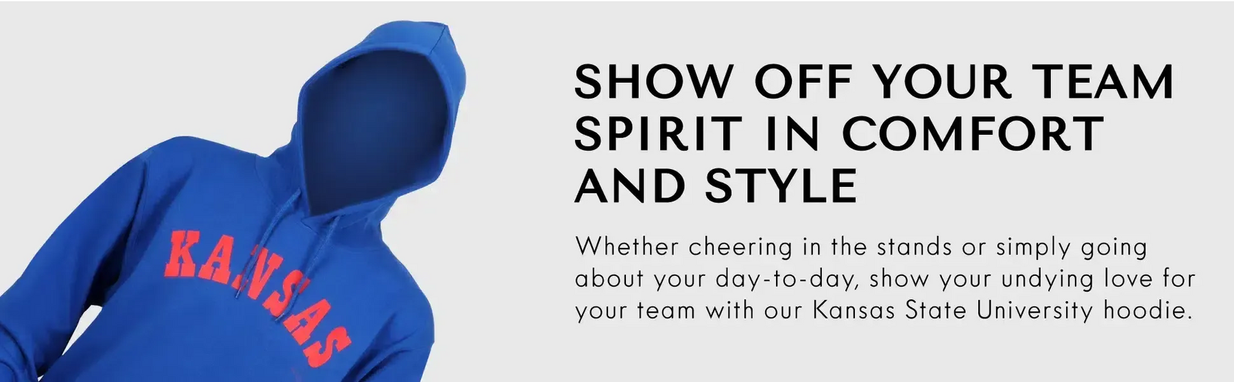 Show your undying love for your University of Kansas Jayhawks Sweatshirt with our hoodie, whether cheering in the stands or simply going about your day-to-day. Our hooded sweatshirt features bold colors and clear professional graphics that will make your school’s name pop. This cozy fleece hoodie is made from 52% cotton and 48% polyester. Equipped with a cozy 9-ounce fleece lining, comfy pocket pouches, and hood drawstrings, this blue hoodie also boasts a true-to-size fit and comes in multiple sizes ideal for both men and women.