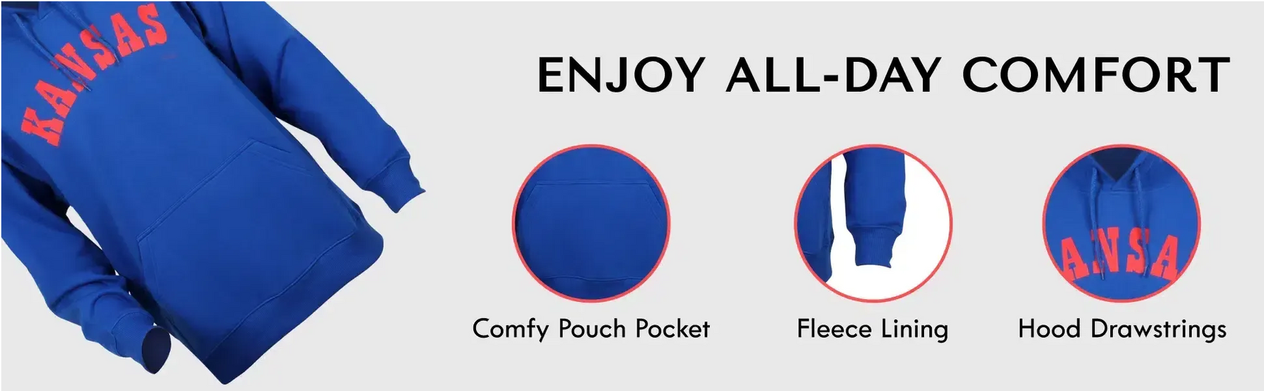 Unisex Blue Hoodies: Our University of Kansas Sweatshirt features a true-to-size fit and is available in multiple sizes ideal for both men and women