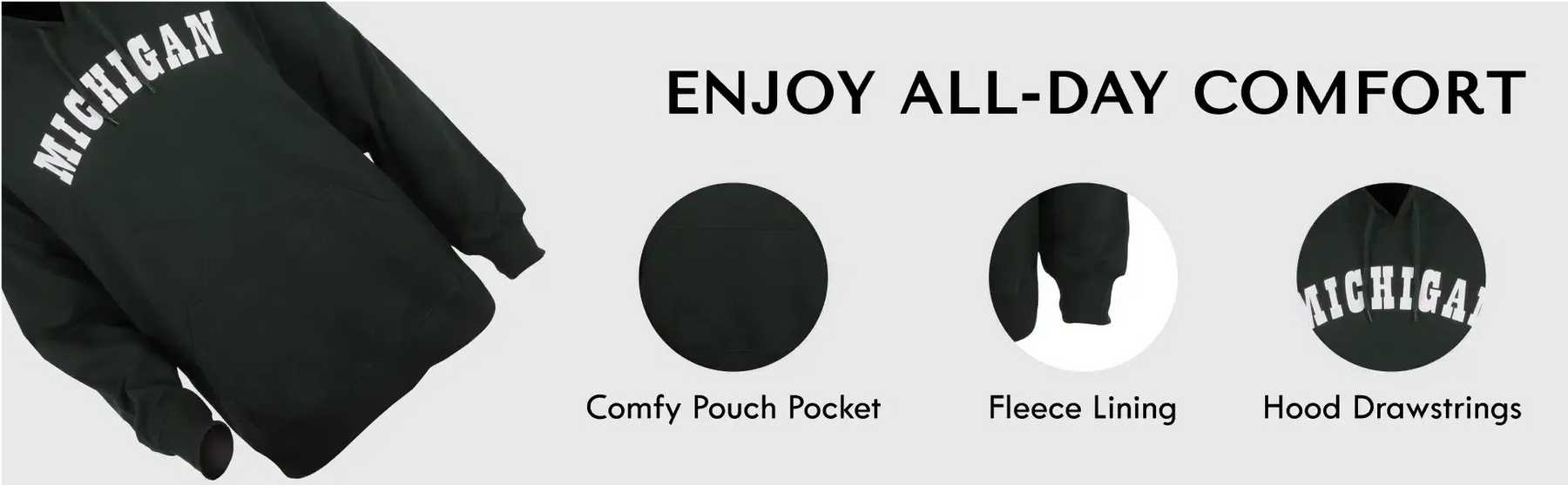 Unisex Green Hoodie: Our Michigan State Sweatshirt features a true-to-size fit and is available in multiple sizes ideal for both men and women