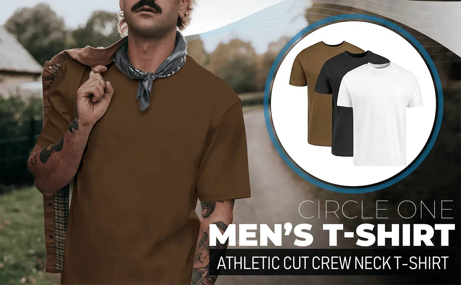 Circle One Men's Crew-Neck T-Shirts For Men 3-Pack - Carbon, Army Green, White